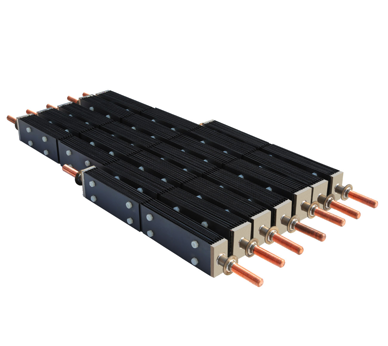 陽極材料可以選用涂層鈦電極?;旌涎趸锿繉逾侁枠O,使用壽命長,此種涂層鈦陽極的過電位也比較低,析氯電流效率高,節能效果好。