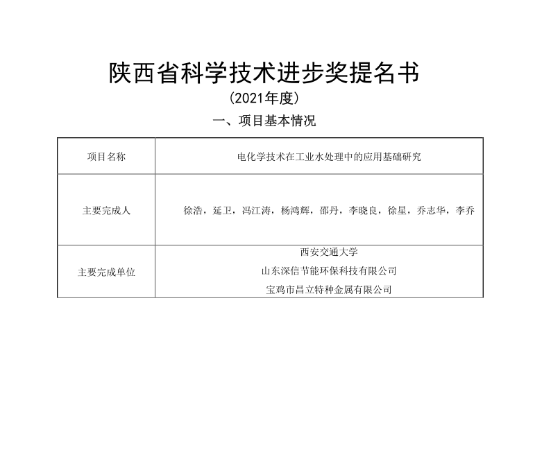 根據陜西省科技獎勵有關要求,現將我司2020年度陜西省科技獎合作申報項目 “電化學技術在工業水處理中的應用基礎研究”信息在公司主頁(http://www.yyystv.com/)上公布,向全校征詢異議。